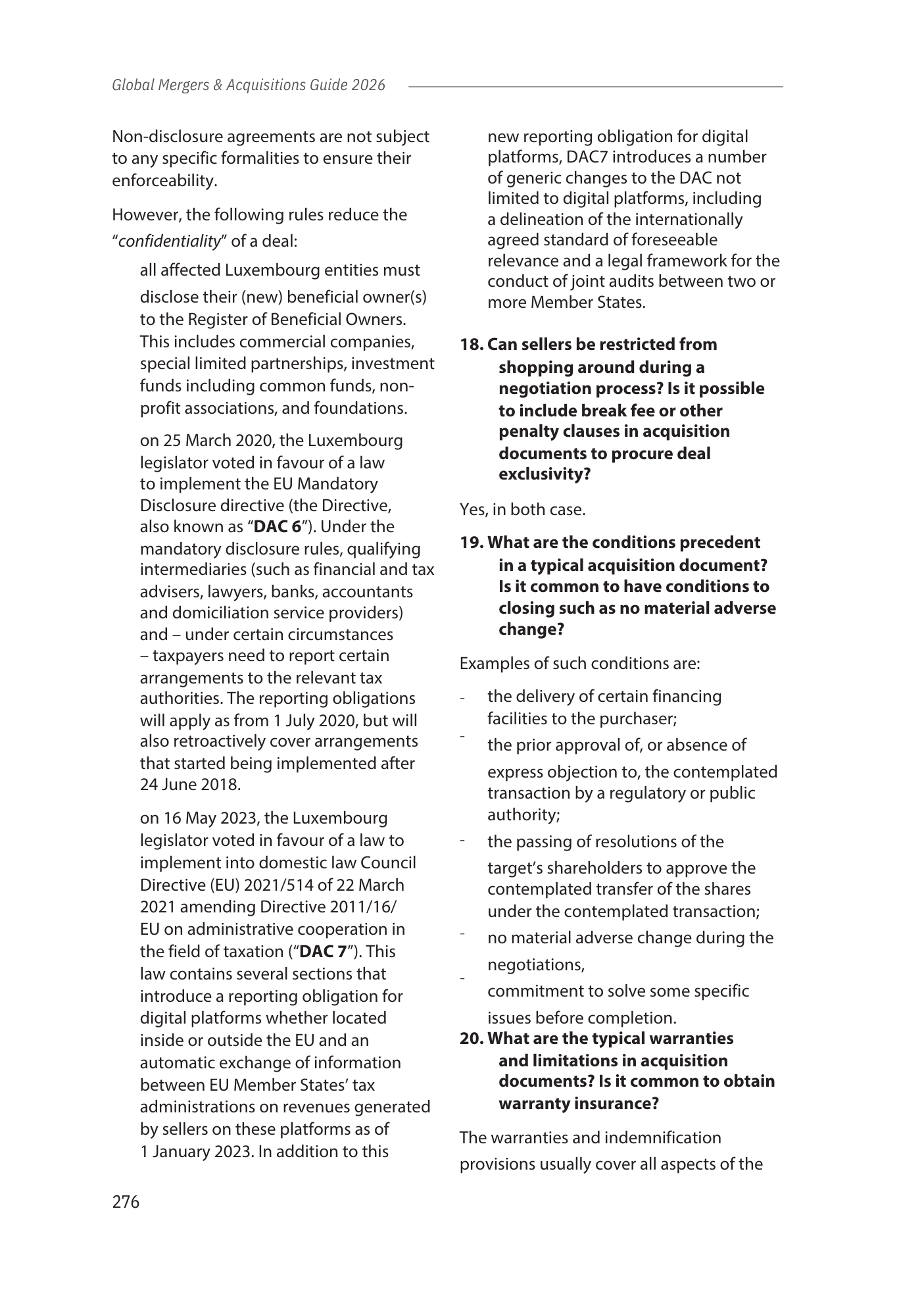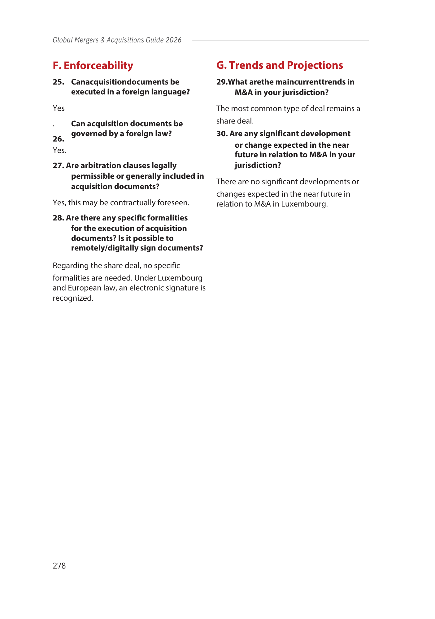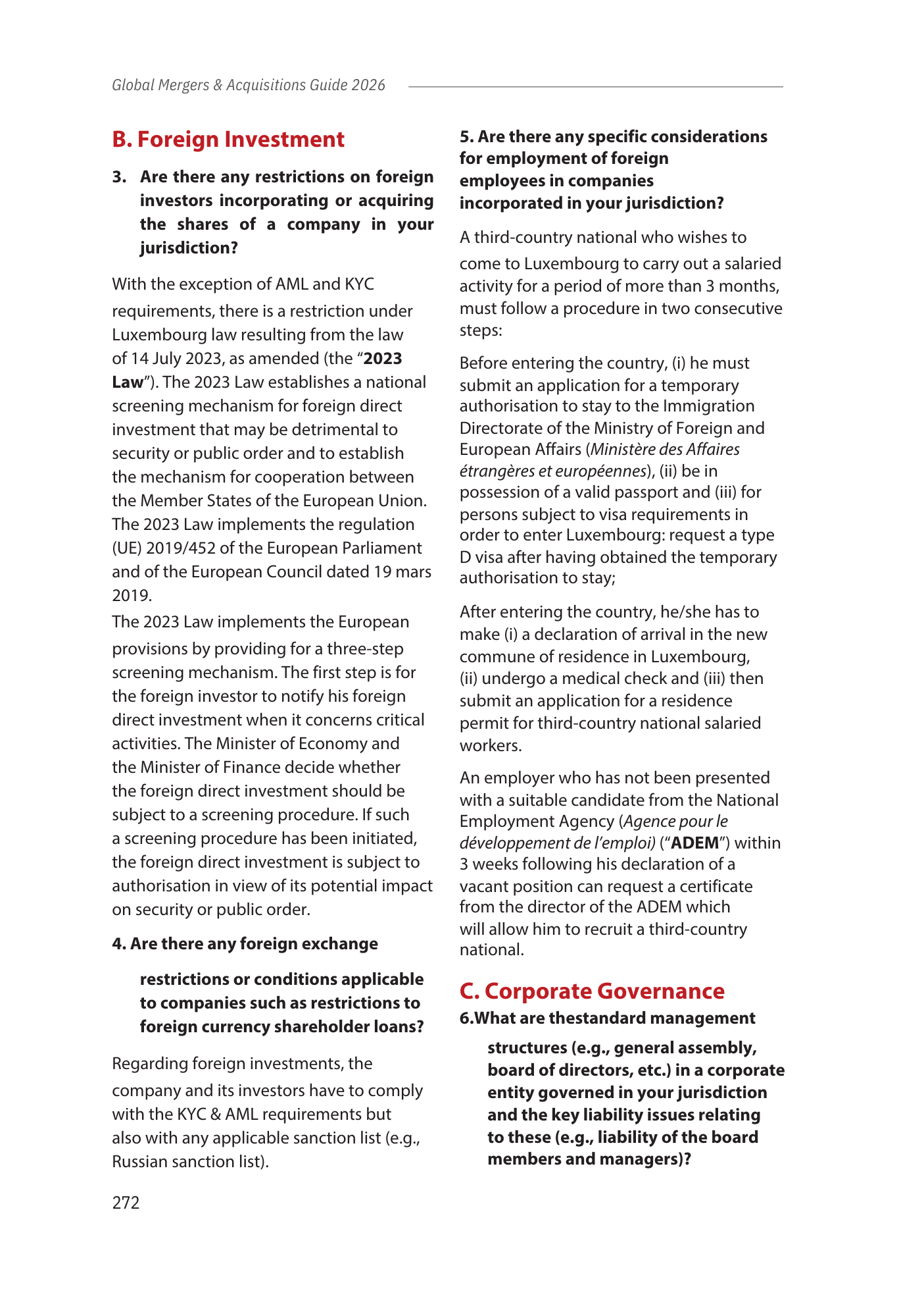 This chapter provides an overview of the Luxembourg legal framework for M&A transactions, covering in particular: