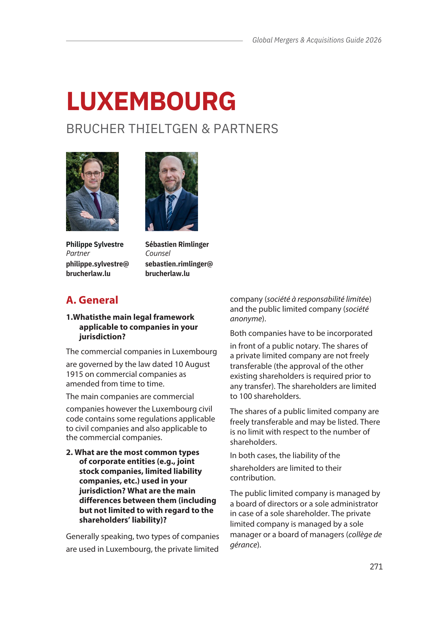 At Brucher Thieltgen & Partners, we are proud to contribute to the Luxembourg section of this international guide for several consecutive years, helping provide practitioners and investors worldwide with insights into the Luxembourg M&A landscape.