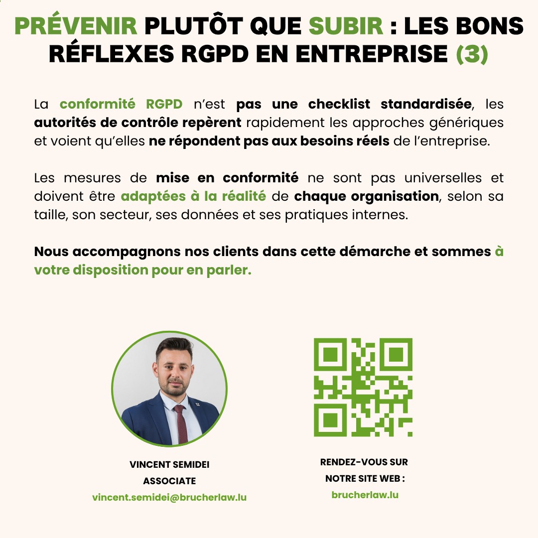 ➡️ Pour toute question relative à la matière IP/IT ou plus précisément liée à la protection des données, n’hésitez pas à contacter Vincent à l’adresse suivante : vincent.semidei@brucherlaw.lu