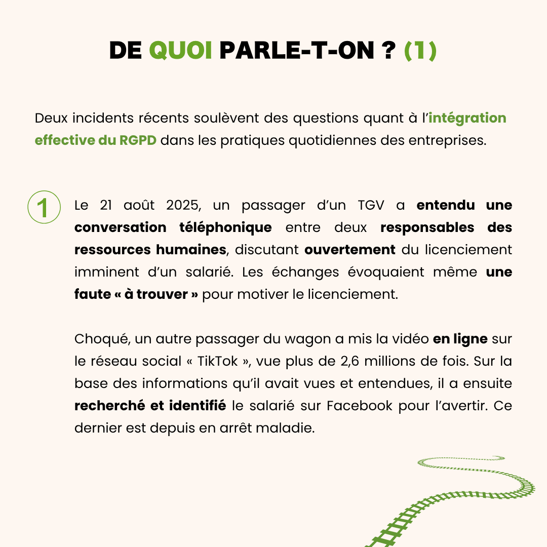 🚆 Un train : une conversation entre responsables des ressources humaines sur le licenciement imminent d’un salarié, entendue puis relayée à des millions de personnes sur TikTok.